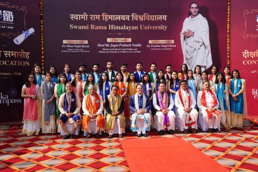 देहरादून : केंद्रीय स्वास्थ्य एवं परिवार कल्याण मंत्री तथा रसायन एवं उर्वरक मंत्री जेपी नड्डा और उत्तराखंड के मुख्यमंत्री पुष्कर सिंह धामी ने जॉलीग्रांट स्थित स्वामी राम हिमालयन विश्वविद्यालय के आठवें दीक्षांत समारोह में क्रमशः मुख्य अतिथि और विशिष्ट अतिथि के रूप में प्रतिभाग किया।
